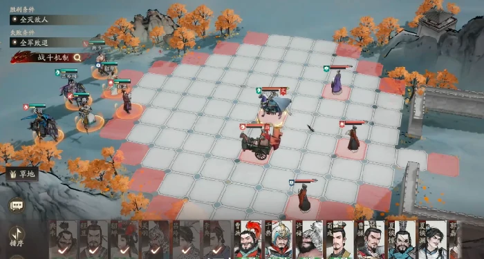 推荐阵容:典韦、程昱、貂蝉、关羽、吕玲绮、李典。开局利用五连棋规则触发再动效果,吕玲绮率先移动至文丑附近施放群体攻击,削弱辅助能力,借助移动机制调整至沮授身后,确保安全。