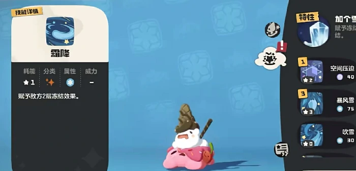 第二种:霜降消耗队。常用精灵:圣代甜甜、雪灵、小独角兽、雪影娃娃。阵容核心:以冰系精灵为主,主打霜降叠加与能耗压制。开局:圣代甜甜释放霜降;雪灵猎手提升对手技能消耗;小独角兽凭借迅捷特性加速控制链。因冰冻自带斩杀压力,迫使对方频繁换宠。最后:雪影娃娃上场,利用特性将每层冰冻转化为额外能耗,限制对手行动,逐步掌控战局。