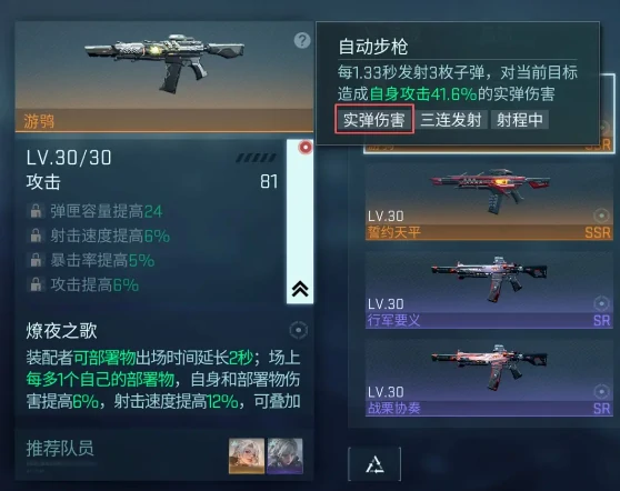 品阶决定上限!SSR武器30级基础攻81,精算师攻击563碾压锋线410。高品阶特殊加成更强,游鸮叠加效果完胜黎明之前固定伤害。