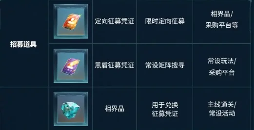 招募核心道具这样拿:定向招募凭证有时效,紧盯采购平台兑换,活动期间猛囤;黑盾征募凭证刷常驻玩法,采购平台也能换,攒够直接矩阵搜寻抽卡,不用等限时。每日任务十分钟清完,资源轻松入手!