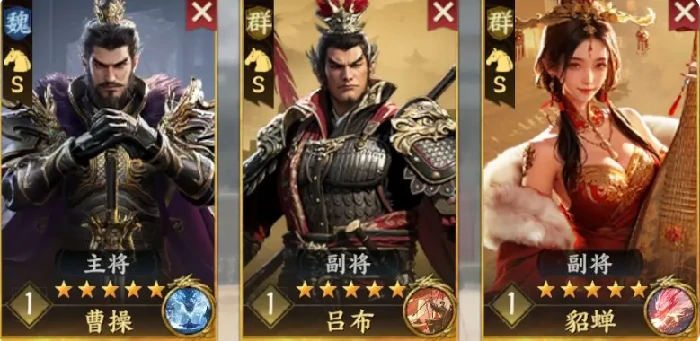 群伤骑阵容:曹操、吕布、貂蝉组合。曹操为吕布提供伤害加成,放大范围爆发优势,自身免疫减速,不易被控场;貂蝉治疗,保障持续作战。面对郭嘉等依赖减速输出的武将,克制效果佳。