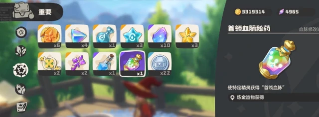 进入炼金塔后,在基础炼金界面放入刚获得的十份首领血脉材料,消耗一定资源合成,得到首领血脉秘药。此为精灵觉醒核心物品,妥善保管。接着对目标精灵使用秘药,如火神这类有进化潜力的精灵。打开背包使用药物,选择符合觉醒条件的精灵激活。