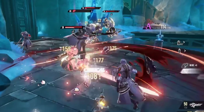 战斗双武器切换,近战有单手剑、重剑、镰刀等,远程含霰弹枪、手枪、双枪等。按角色擅长搭配,武器品质蓝<紫<金。召唤两名队友协助,后台角色提供额外伤害支援。