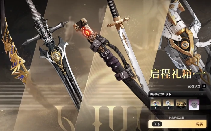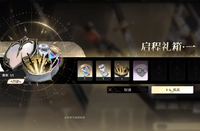 商店中6元启程礼箱值得关注:购买可获得两个沙漏、一件限定武器及角色装饰镜框。沙漏用于参与限定活动,单次寻觅消耗一个沙漏,十连寻觅必出紫色及以上品质道具,九十次寻觅可获金色品质道具。