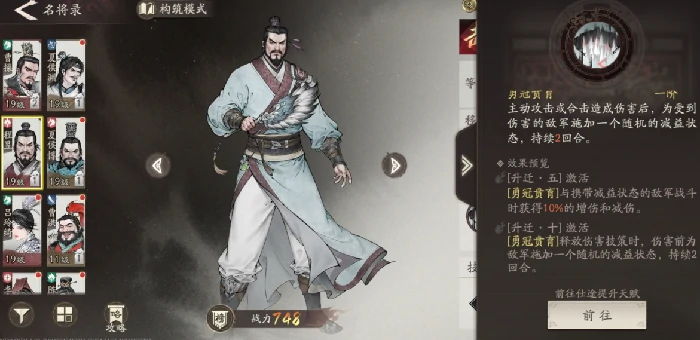 武将技能配合、站位安排是关键,多试多调,打造专属强力策士队。