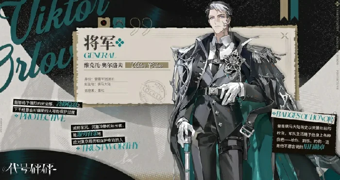 将军维克托・奥尔洛夫:银白发丝搭配笔挺军装,气质冷峻禁欲,是玩家热门选择。作战中凭借设计能力提供稳定输出,专属技能可提升全队命中率及真实伤害增益。互动时需注意推进关系时机,避免提及军队历史相关敏感话题,以免降低好感度。
