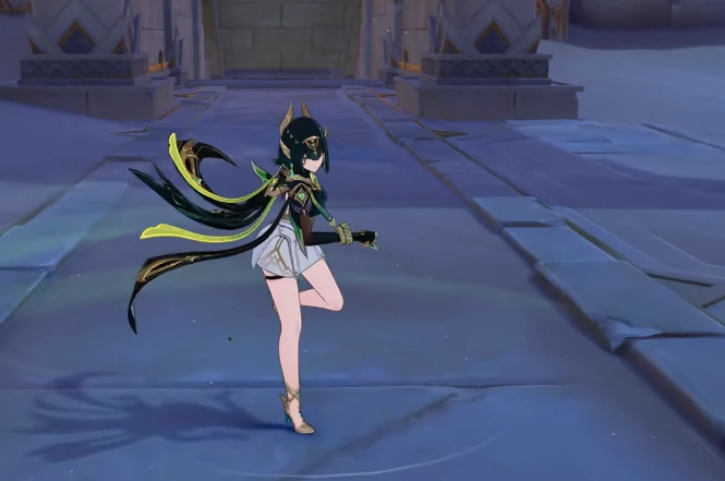 凝聚草元素发动下落攻击,打击地面区域内所有敌人,高效应对群体目标。释放元素战技向前突进,终止位置触发大范围草元素爆发;进入影舞状态后,持续消耗体力可进一步提升作战效能。