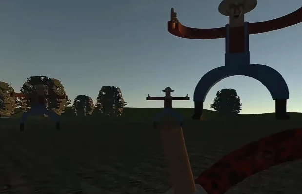 登上农场制高点,调整镜头寻找约翰玩滑梯彩蛋;靠近农田稻草人,提前准备闪避袭击。