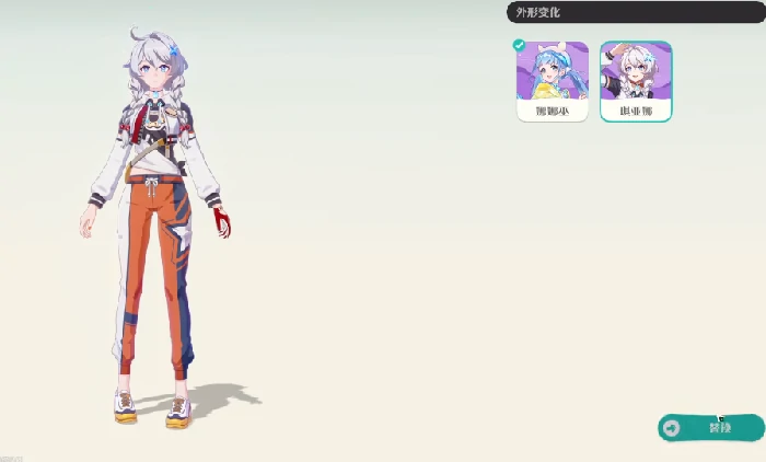 玩家完成原理修复任务,琪亚娜出现在大厅,对话纳入阵容。白橙拼色长裤,造型鲜明活力。设为队长触发人类最好的朋友效果,召唤辅助单位奶丁汪,不占出战位置,可额外派遣精灵,提升整体战力。