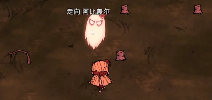 阿比盖尔是温蒂专属幽灵伙伴,通过阿比盖尔之花召唤/取消。未召唤时自动回血或攒经验,平静状态在温蒂1-5单位内活动,激怒后扩展至3-10单位。
