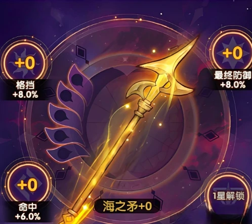 第二件海之矛设四个槽位,对应格挡、命中、最终防御和最终攻击。镶嵌宝石和升级,属性实现8%~40%提升。最终攻击和防御升至最高,激活额外格挡属性,提高20%击破效果。适配多种阵容,推荐新手使用,灵活百搭。