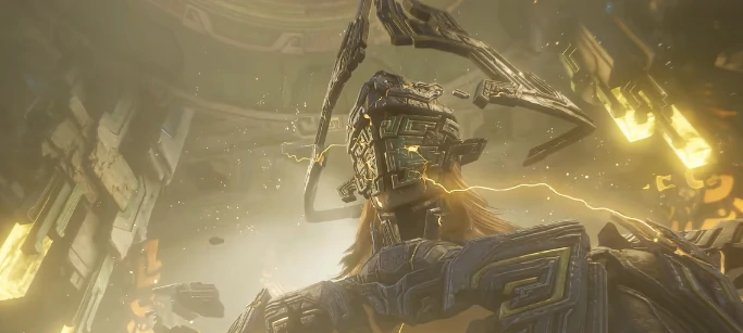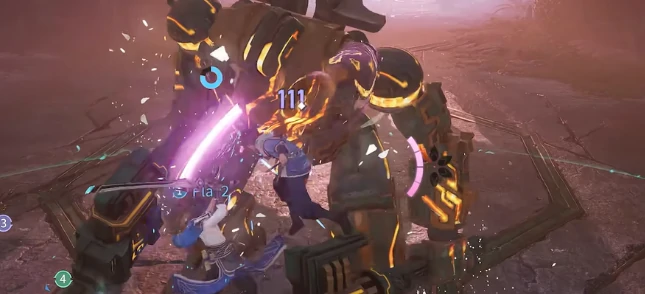 阶段二:石柱挥击规避观察boss抬手动作,利用技能前摇时间,释放大招触发无敌帧抵消伤害。成功规避后,boss再次虚弱,继续合力输出。