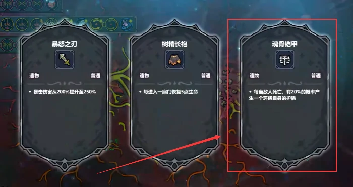 魂骨铠甲:普通防御遗物,击败敌人20%概率触发护盾,吸收高额伤害。依赖击杀频率,首选清场/处决能力强的角色装备。