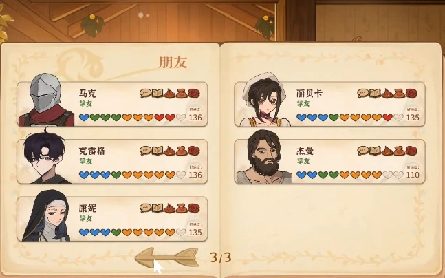 进阶技巧:了解各角色最喜欢的礼物类型,针对性赠送+有效对话提升好感。查看角色页面事件提示,完成全部事件即可走向婚姻结局。
