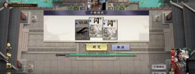 核心思路:用埋伏牌控节奏,靠杀牌补伤害。开局用十面埋伏,将两张闪和一张无懈可击设为埋伏。闪后续转杀应对防御,无懈可击破解反制,三张埋伏牌为进攻铺路,提供保障、避免操作中断。