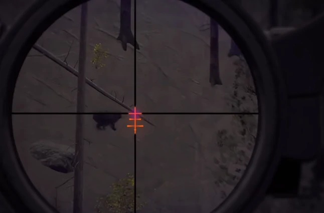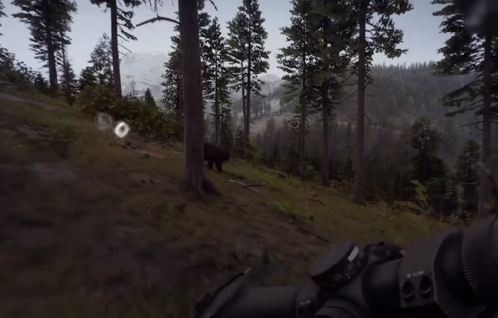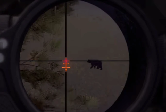 选远距离狙击步枪,抢占高位地形,俯瞰搜索目标。熊常出没寒冷区域,用高倍镜瞄准肺部。命中后熊会逃跑失血,沿血迹追踪即可,降低正面冲突风险。