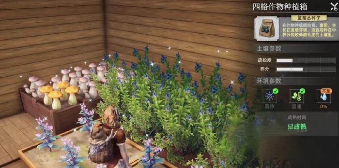 动态调整浇水时机:雨天露天作物免浇水,雨水自动灌溉;晴天或室内种植,必须使用水桶浇水。一桶水覆盖3×3范围4个种植箱,提供30%水分。