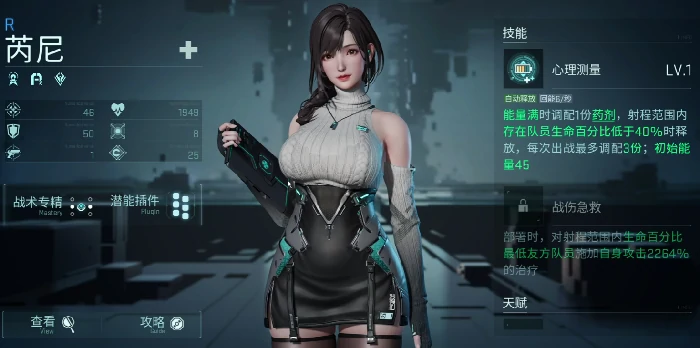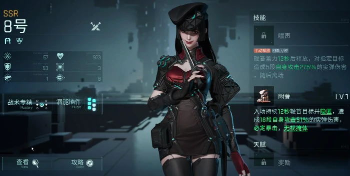 斯特兰妮:输出角色,依赖攻速。对目标造成221%攻击力真实伤害,无视掩体,技能期间提升15%暴击率。