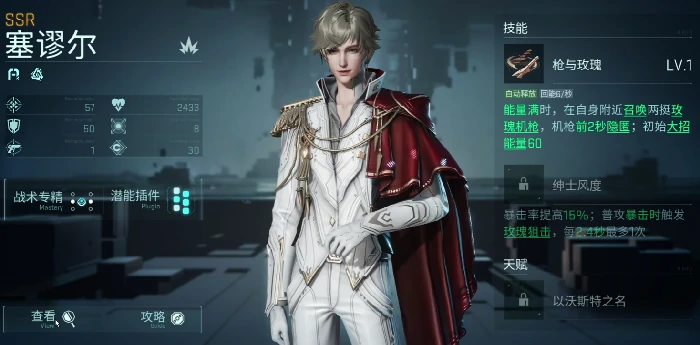 塞缪尔:远程输出,能量蓄满召唤机枪扫射,暴击率高,持续输出稳定。
