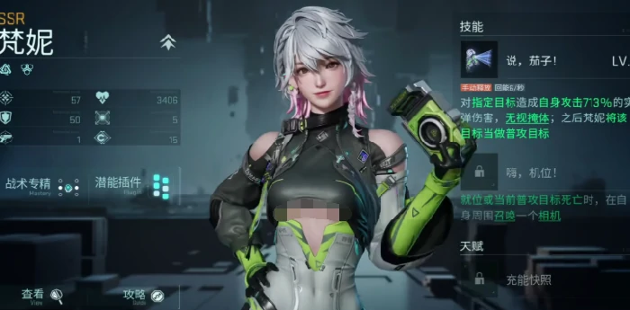 梵妮:远程输出,单体爆发强。技能对指定目标造成713%攻击力真实伤害,无视掩体,命中触发持续追击。
