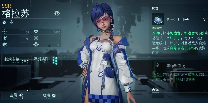 格兰芬:工程输出,召唤物助战。装备坏小子机器人,对最近敌人造成236%攻击力真实自爆伤害。