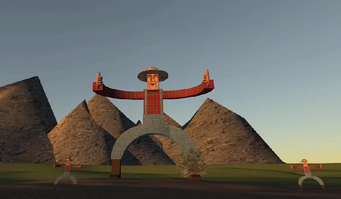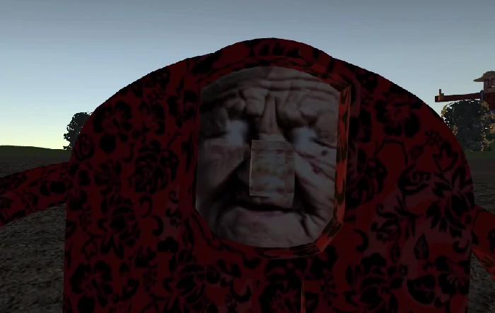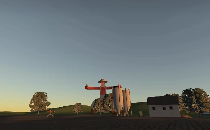 操控角色前往山顶地带,切换自由视角,俯瞰山区景色。偶见农夫约翰玩滑梯。农田区域有类似稻草人的角色,靠近会发动攻击,需迅速闪避,否则被捉游戏失败。田间停挖掘机,接近播放搞怪音乐,传送至神秘空间。