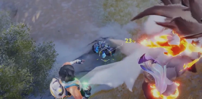 对战雪地盔勇士,怕不小心击败它就用等级相近的精灵出战,高等级精灵压制力强,不利于控血。战斗中时刻留意其生命值,血量低时可借助周围地形辅助。