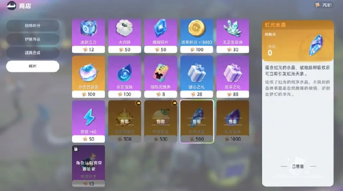 虹光水晶可通过系统前期赠送、完成任务或商城购买获取,商城价格高,建议资源充足再买。使用前确认区域是否适合,提前查看该区域虹光天气下出现的宠物类型,不是想要的就不轻易用道具。
