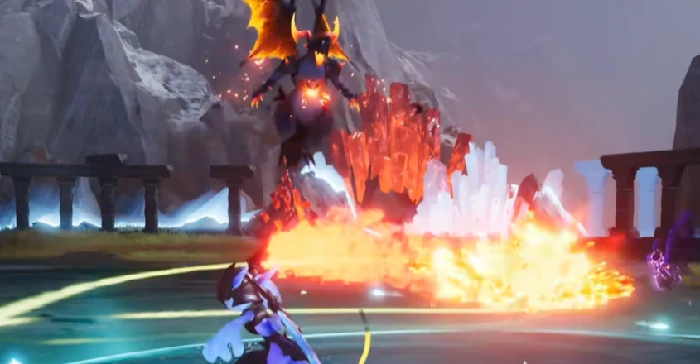 火凯龙飞至空中,预示即将施展火焰能量场这一高强度技能。该技能在大片区域持续降下火焰攻击,覆盖范围广,常规移动难完全避开。优先寻找场地掩体,如岩石或低洼处,可阻挡或减弱火焰能量伤害。能量场攻击有短暂间隙,借此反击,需依赖地形灵活调整位置。