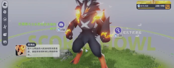 宠物界面查喜好、技能、可研究内容。解锁1个宠物特性,获50 - 60点研究点。不同天气拍宠物形态变化,轻松攒点换道具。