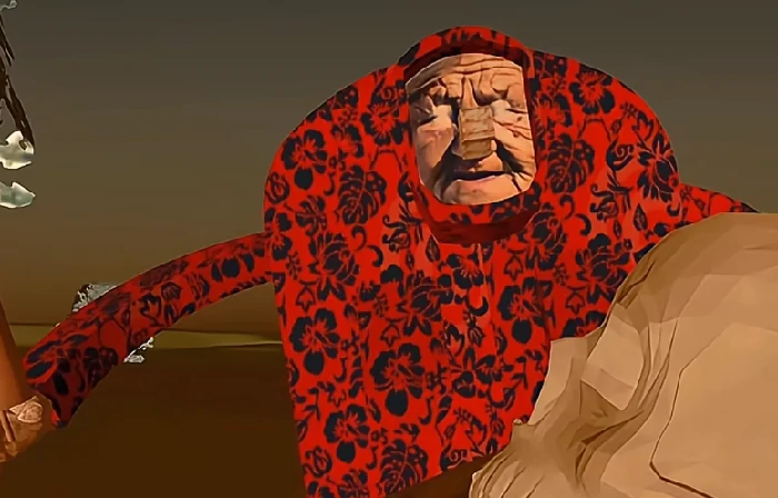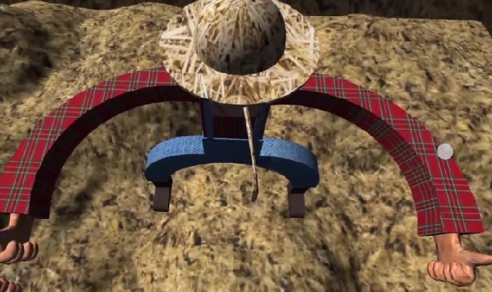 探索时靠近稻草人,会被拖入封闭空间,响起循环音乐,营造心理压迫感,表明该角色能操纵空间、强制移动玩家;在房间拾取斧头,会引来老奶奶,导致游戏失败,可见农场遍布致命陷阱。