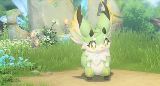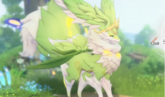 完成初次进化为蓬尾狐:体型增大,造型优化,战力显著提升。主动技能伤害倍率增强,暴击增益保留;新增自动技飘叶散射,对矩形范围多目标连续发射叶片,提升群体清怪效率。最终形态外观威严,体型魁梧,配装饰性皇冠,视觉表现突出。