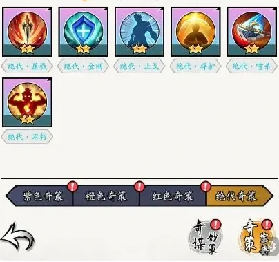搭配“长驱”与“增伐”增强追击效果,提升连击频率与伤害层级。遇王昭君换孙悟空奇策破无敌护盾,打高防御单位用秦始皇奇策无视部分防御。用橙色和红色奇策过渡,效果可观。
