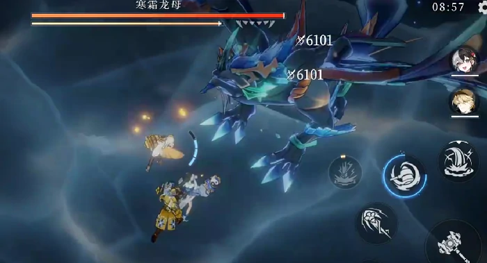 韧性值削至零,BOSS倒地瘫痪,全队抓时机集火头部,该部位伤害倍率更高。重新站立后,龙母抬头咆哮,向地面喷寒霜气息,造成持续低额伤害,此阶段可硬抗。