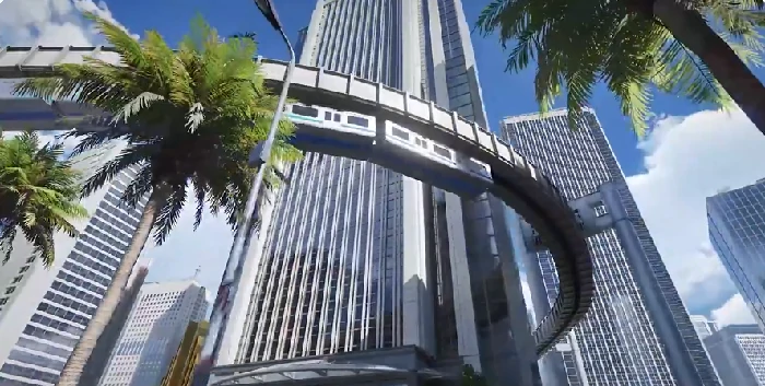 新启市为海滨都市,地图设计侧重密度,有限范围精细还原密集建筑群与多层交通体系,构建高度压缩都市生态。区域通过立体道路连接,强化纵深感与真实感。