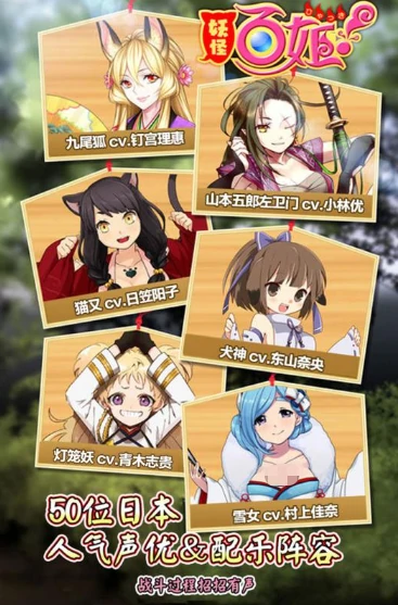 日式风格手游,含百位美少女角色。以日本传统妖怪文化为背景,搭配豪华声优阵容与多样玩法。玩家需组建卡牌阵容,与角色并肩作战,挑战各类关卡。妖怪采用萌系外形设计,氛围轻松。
