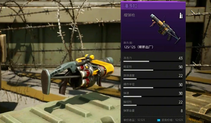 初始装弹量6发,射速50,换弹速度37,发射间隔较长、装填时间偏慢。攻击力高达51,单发伤害突出,可弥补弹药和装填劣势。偏好高爆发输出、自信射击精准度的玩家,可选用悍匪榴弹炮。尤其在高机动、频繁走位的野外对战中,高伤害特性带来可观战术收益。注意,武器耐久值95,耐久低于一半时及时维修,避免影响作战效能。