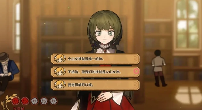 主线对话选支持选项:占卜选带来希望;信仰选不信神但火山女神是神;社交选有自己节奏;祈祷选虔诚祈祷,累计得25点以上好感。