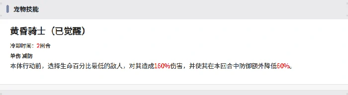实战操作:每回合优先启用黄昏骑士破防,随后安排其他角色输出。适配群体伤害型异格者,先以范围技能压低敌方血线,再借黄昏骑士锁定机制完成收割,压制对手生存空间。