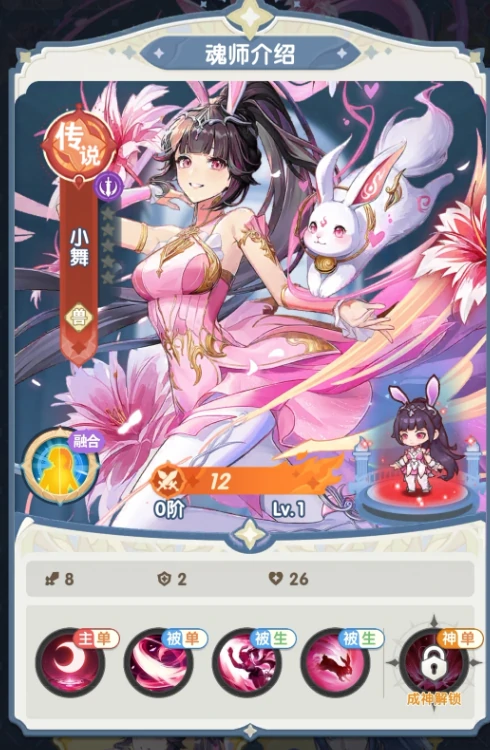 小舞武魂柔骨魅兔,实战能力突出。爆发输出强,普攻连招流畅,长按触发狂热状态,施展劈砍造成高额伤害。