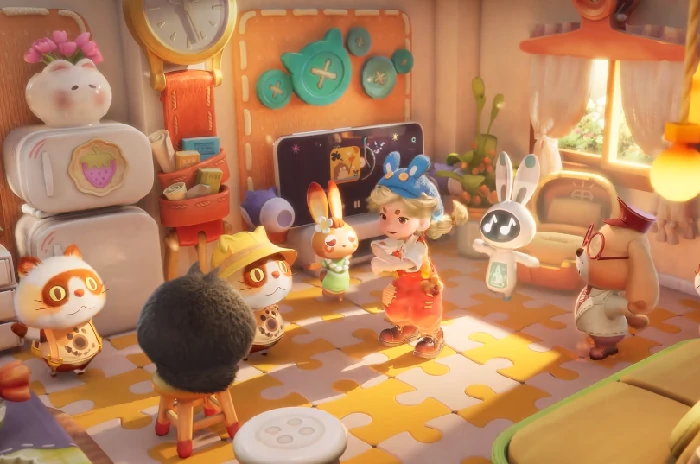 搜集资源,布置家园,开放区域种植作物,参与休闲小游戏。组队进入副本,体验轻度战斗与随机Roguelike机制。邀请好友至家园互动,举办茶会或派对,提升亲密度。