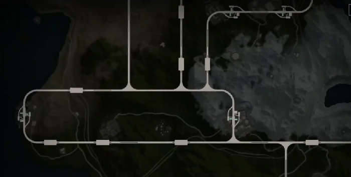 污水处理厂在山脚,有军火箱和绿色卡片,守卫看守时从后方破窗进入;绿色卡片开启东北方向绿色房屋,连接两根电线管解锁下一处补给。