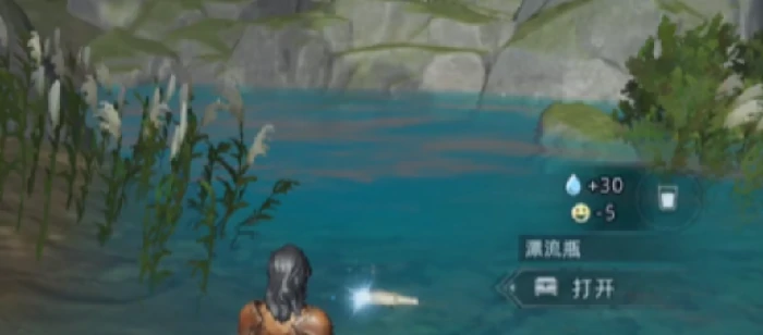 优先找漂流瓶宝箱:沃维森林南岸小岛,大河附近,红树林环绕,找到漂浮瓶子,直接交互收集。