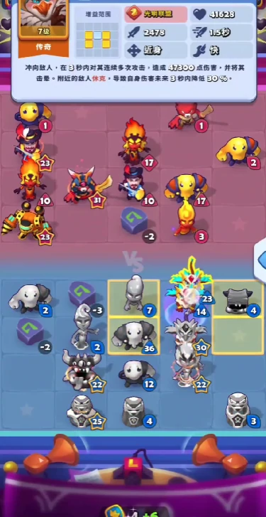 部署辅助型角色会占用输出单位位置,要根据敌方阵容灵活调整。对手爆发能力强,圣诞老人护盾优势明显;敌方擅长持续输出,建议改用仙灵公主或图腾等其他辅助角色。