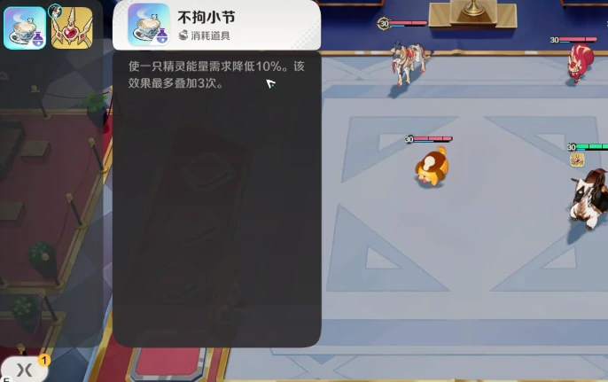 增益道具不拘小节适配大海龟,使用降低精灵10%能量消耗,最多叠加三层,提升持续作战能力,保障长时间对战高效防御与输出。