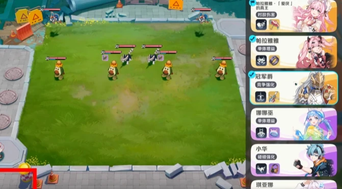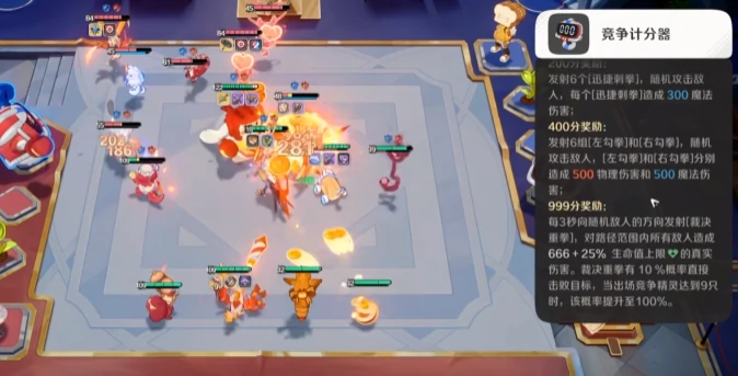 对战在8×8棋盘,机制类似简化自走棋,省抽卡合成,易上手。棋盘有增益特殊格子,左侧显已激活阵营效果,三只饱食阵营精灵提升全体生命值。右侧看精灵状态血条,可调技能释放顺序,优先星光蛾治疗。装备按钮配三件装备,战力绝对优势可跳过战斗省时间。