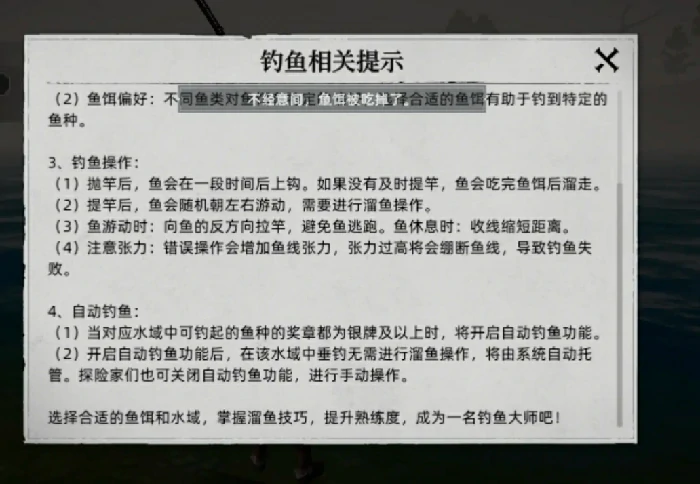 鱼饵选择:备足蚯蚓、素鱼饵、肉鱼饵,针对鱼种偏好使用;钓不全鱼种时更换鱼饵或调整时段。收集鱼类自动入图鉴,任一钓点鱼类奖牌达银牌解锁全自动钓鱼。