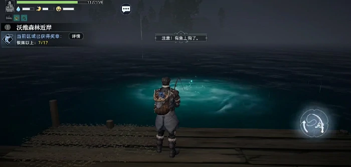 钓鱼操作:靠近钓点交互进入模式,抛竿后等鱼咬钩,及时提竿;鱼游动时反向操控溜鱼,系统提示收线后拉近岸边;鱼再次游动重复反向操作与收线,循环直至钓获。
