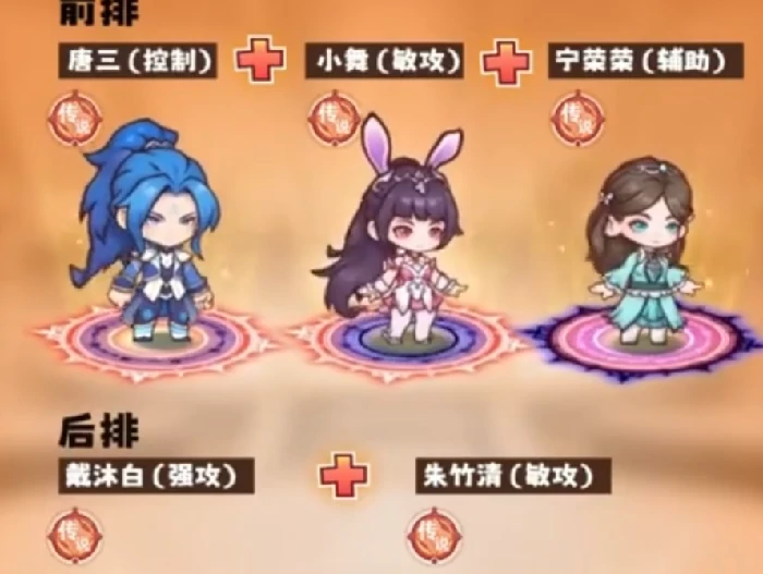 前排承伤戴沐白:武魂双加防与攻,主动技能高伤清场,半血以下进爆发,三回合百分百格挡,血回效果渐衰减,提前站稳抢输出。