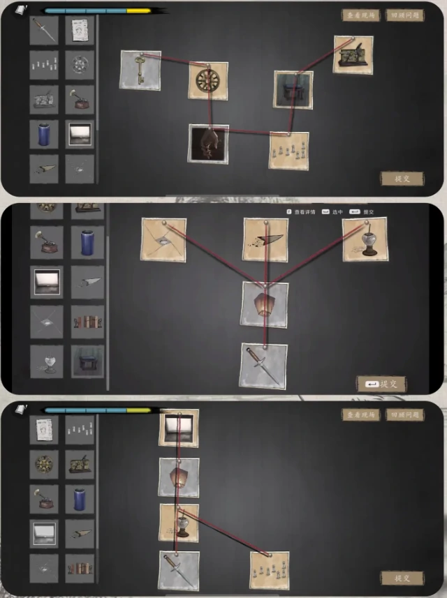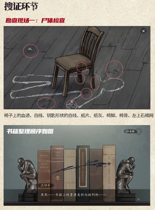 核心玩法:多场景搜线索,逻辑拼合解谜。搜查案发现场房间:进入后先观察地面人形标记、左上角石棉网。检查固定陈设:仪器桌、煤油灯状态、油纸是否破损、药瓶摆放次序、最右侧瓶子标签内容,逐一确认。